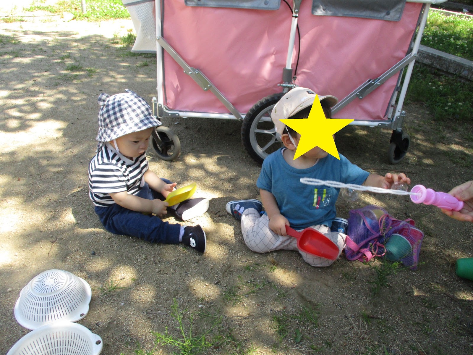 5,6月は散歩に出掛け、木陰で遊んだり、